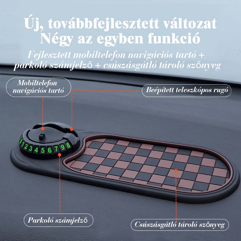 📱🚗 Multifunkcionális műszerfal alátét: mobiltelefon tartó + ideiglenes parkolási jelzőtábla + tároló alátét — csúszásgátló, tartós, kifejezetten a biztonságosabb és kényelmesebb vezetési élmény érdekében tervezve.